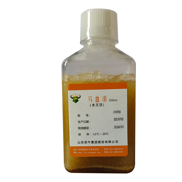 馬血清:系采用健康活馬血液為原料,經(jīng)無(wú)菌采集、分離、多級(jí)微孔濾膜過(guò)濾除菌和適宜劑量60Co照射。本產(chǎn)品無(wú)支原體、病毒和細(xì)菌,內(nèi)毒素小于10EU/ml。適用于多種微生物的培養(yǎng)。